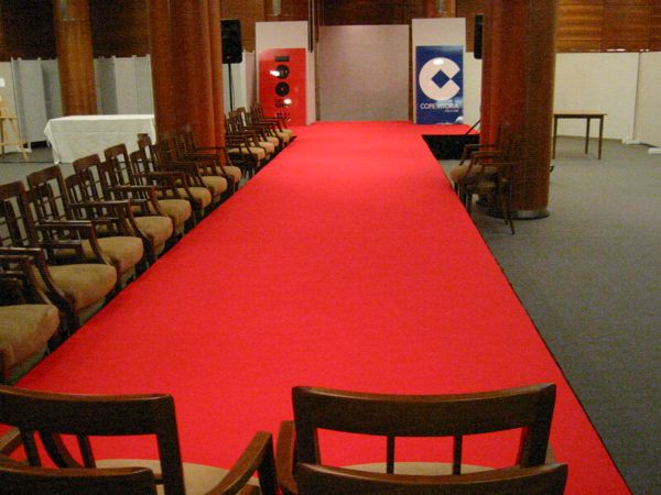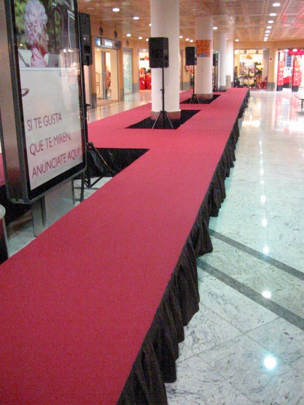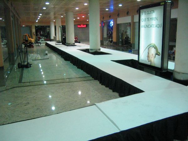 Montamos la pasarela al tamaño y la altura deseado, con los colores de moqueta y faldon que se desee.